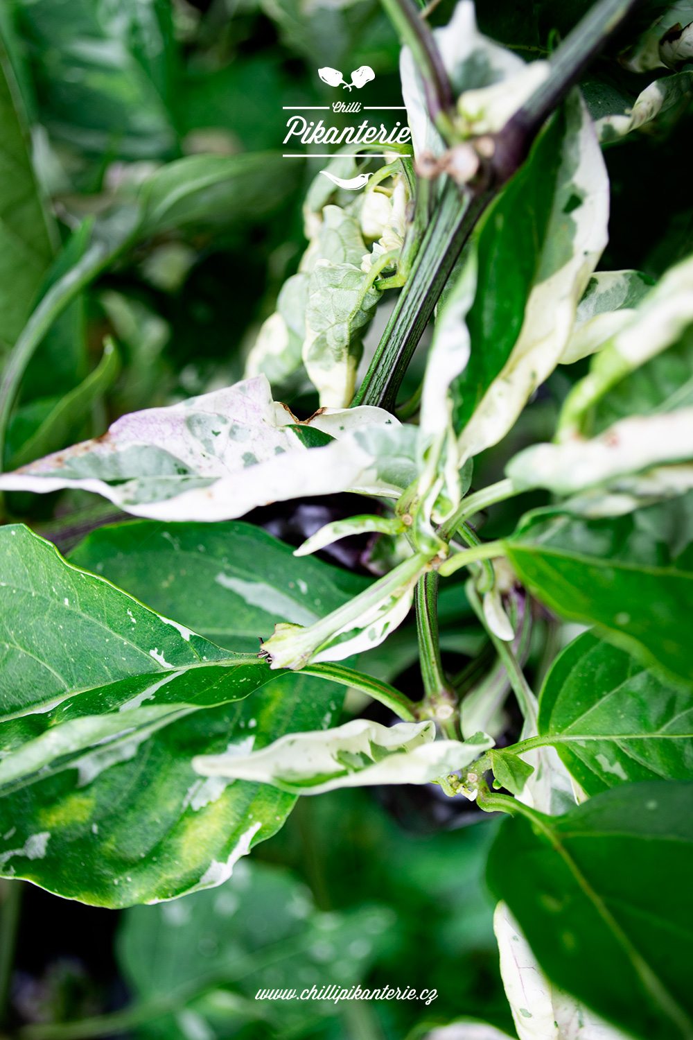 Camelot je vizuálně fascinující odrůda, která patří do exkluzivní rodiny panašovaných papriček. Tento unikátní kříženec odrůd Variegated Sugar Rush Peach (VSRP) a Poblano, vytvořený americkým šlechtitelem Ericem Knightem, vyniká především svou neuvěřitelnou estetikou. Rostlina má fialovo-černé stonky a listy zdobené výrazným bílým a fialovým panašováním.